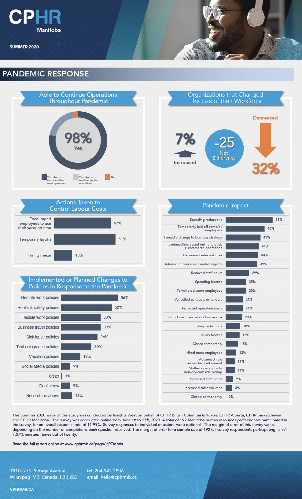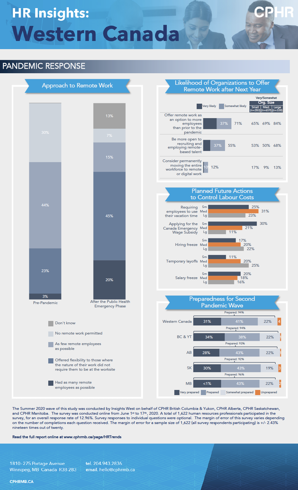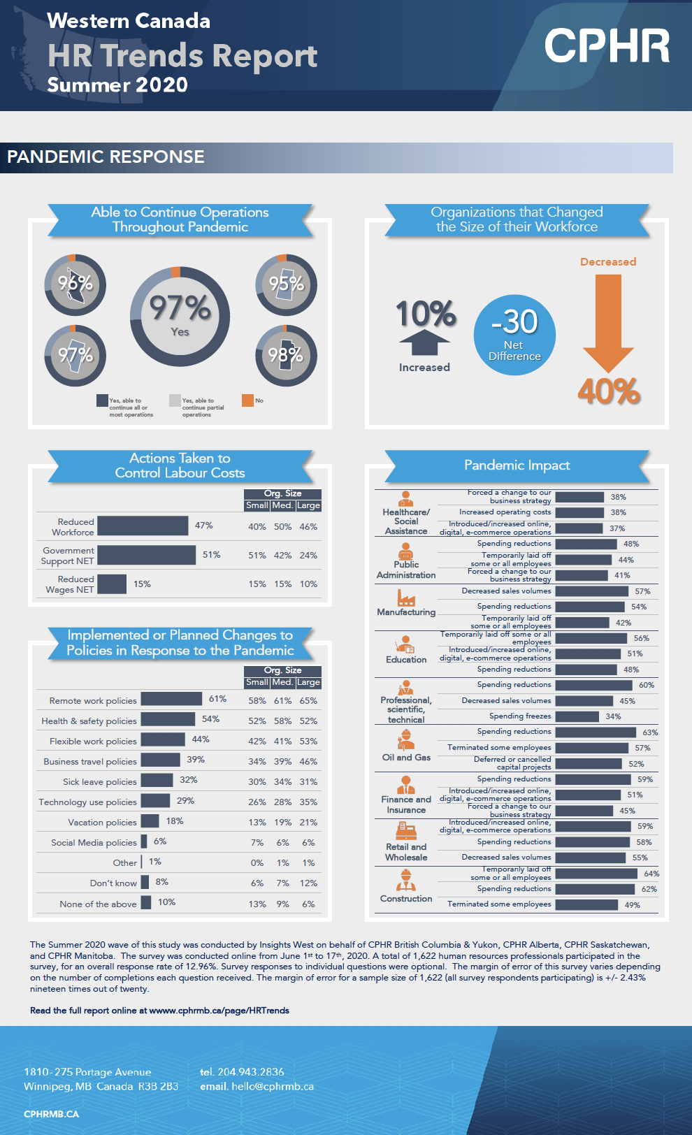 The Western Canada HR Trends Report is a report commissioned by CPHR British Columbia & Yukon, CPHR Alberta, CPHR Saskatchewan and CPHR Manitoba. The intent of the report is to gather data to help fill the labour information void for the members of each of the associations and to ascertain industry benchmarks that can help human resources professionals make better talent management decisions. It